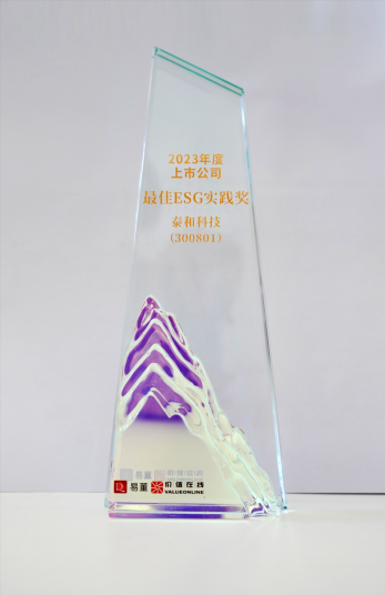 泰和科技(300801)榮獲由深圳價值在線信息科技股份有限公司、深圳市投資基金同業公會、鳳凰出版傳媒集團董事會雜志社聯合頒發的“2023年度上市公司最佳ESG實踐獎”,在綠色可持續發展道路上,我們將繼續踐行!